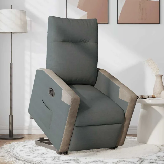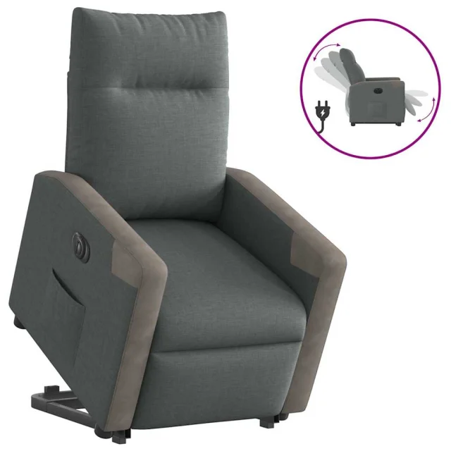 Električni naslanjač - Relax naslanjač s funkcijo vstajanja temno siv