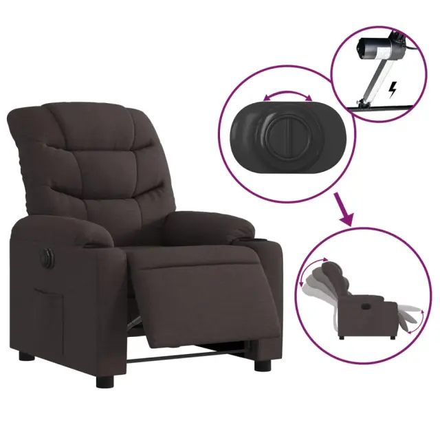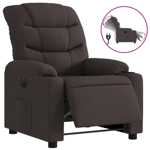 Električni naslanjač - Relax naslanjač temno rjavo blago