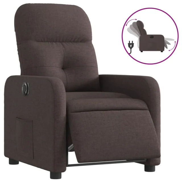 Električni naslanjač - Relax naslanjač temno rjavo blago