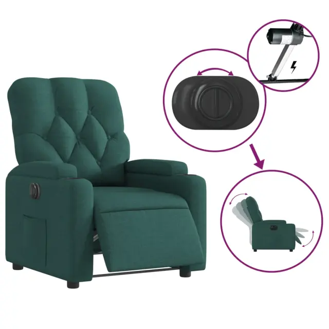 Električni naslanjač - Relax naslanjač temno zeleno blago