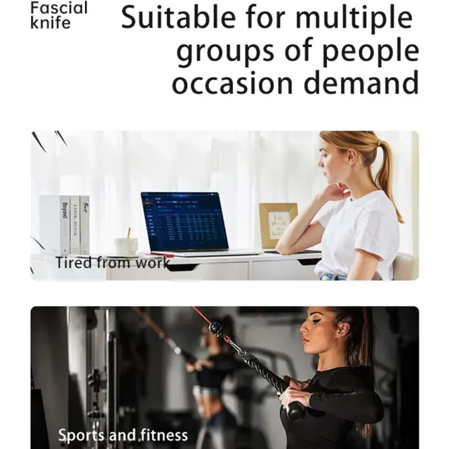 Globoka sprostitev mišic: Doživite vrhunsko sprostitev mišic z našim električnim nožem za fascijo, zasnovanim za lajšanje bolečin in togosti mišic. Kombinacija načinov ogrevanja, mikro toka in vibracij spodbuja globoko tkivno terapijo, ki učinkovito cilja na sprožilne točke in vozličke. Ta napredna tehnologija pomaga razgraditi kopičenje mlečne kisline, zmanjšuje utrujenost po vadbi in pospešuje okrevanje mišic. Idealen za športnike in fitnes navdušence, ki iščejo priročno in učinkovito rešitev za lajšanje bolečin v mišicah in izboljšano gibljivost. Uporabite ga na hrbtu, ramenih, vratu, rokah, pasu, sklepih in nogah za sprostitev celega telesa.