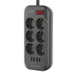 Razdelilnik je opremljen s 6 evropskimi AC vtičnicami, tako da lahko polnite več svojih naprav hkrati. Še več, izdelek ima 4 USB priključke, ki še dodatno razširijo možnosti in omogočajo polnjenje na primer pametnega telefona brez adapterja. Adut razdelilnika je tudi solidna izdelava – PC material je ognjevaren in se ne ustraši temperatur do 700°C.
