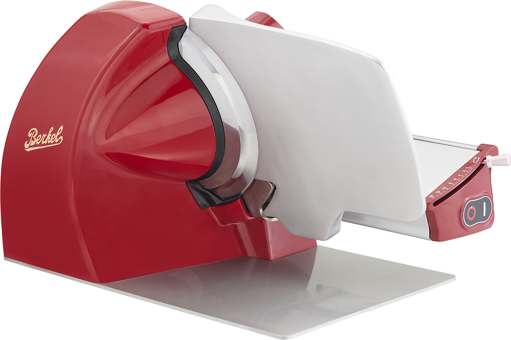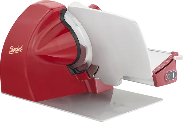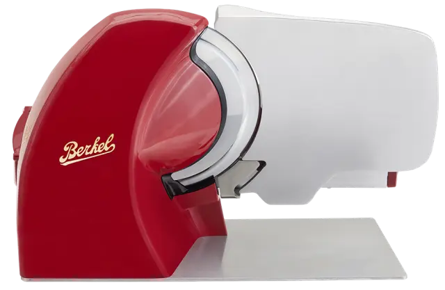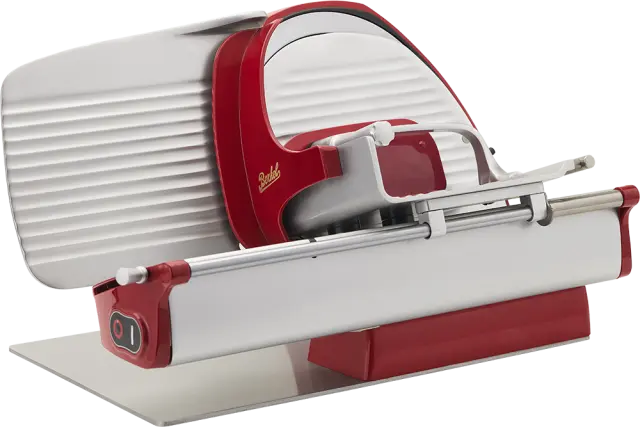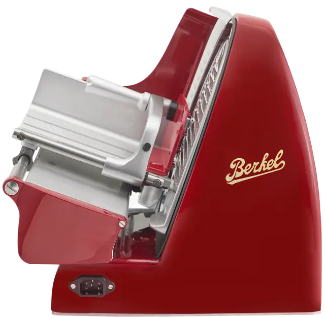 Lastnosti- Zelo tanek ostanek izdelka za zmanjšanje izgube materiala- Ročica za odpiranje merilne plošče z 18 milimetričnimi nastavitvami za natančno regulacijo- Nagnjena plošča za hrano za preprosto in natančnejše rezanje- Rezilo iz kromiranega jekla s profesionalnim profilom: zmanjša količino odpadkov in zagotavlja popolne rezine- Neprekinjen profil pokrova rezila za izboljšanje stabilnosti izdelka in olajšanje gibanja izdelka za rezanje- Poševna odprtina merilne plošče, ki pomaga rezini izstopiti na lažji način- Profesionalni motor 0,25 CV/0,19 kW za visoko zmogljivost rezanja tudi za trše izdelke- Vgrajen deflektor za lažje odstranjevanje rezine- Podpora izdelka zmanjša prostor med mizo in merilno ploščo, kar omogoča, da se izdelek za rezanje popolnoma nasloni na mizo za meso in zmanjša količino odpadkov.- Posebna litina iz aluminijeve zlitine in osnovna plošča ter noge iz polimera za popolno stabilnost med rezanjem- Popolnoma IP65 zaprta nadzorna plošča- Brusilnik je na voljo kot dodatna oprema- Oznaka NFC: tapnite rumeno nalepko, da zaživite izkušnjo Berkel z ekskluzivno vsebinoČIŠČENJE IN HIGIENA- Podstavek z vgrajenim ščitnikom za rezilo: lupina, nameščena na zadnji strani rezila, omejuje vmesne prostore in preprečuje nabiranje odpadkov- Sistem za hitro odstranjevanje pokrova rezila iz aluminija za hrano za enostavno čiščenje rezila- Nagibna plošča za hrano za enostavno strojno čiščenje- Varnostna ključavnica s certifikatom CE: medtem ko je plošča za hrano nagnjena, merilna plošča ostane blizu, da se izognete nevarnosti ureznin med čiščenjem- Enostavno odstranljivo držalo za stiskanje izdelkov, primerno za pomivanje v pomivalnem stroju- Aluminijasta ploščata osnovna plošča za popolno odsotnost prostora med rezalnikom in mizoVARNOST- Varnostna ključavnica s certifikatom CE: medtem ko je plošča za hrano nagnjena, merilna plošča ostane blizu, da se izognete nevarnosti ureznin med čiščenjem- Podpora izdelka za dodatno varnost rezila med postopki čiščenja- Profesionalna nadzorna plošča, stikala za vklop/izklop z LED diodami visoke vidljivosti- Ergonomski krmilni elementi v udobnem položaju, ki zmanjšujejo kakršen koli napor operaterja- Samodejni izklop stroja v primeru izpada električne energije