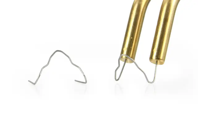 Plastična sponka “big wave” – za najbolj zahtevne in vzdržljive povezave. Njegova sinusna oblika zagotavlja največjo moč lepljenja. Primerno tudi za okrogle predmete.