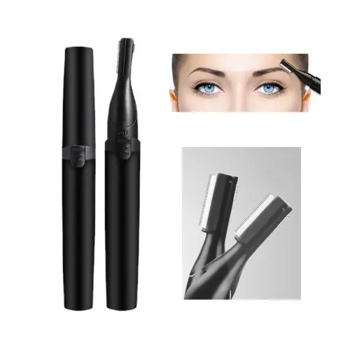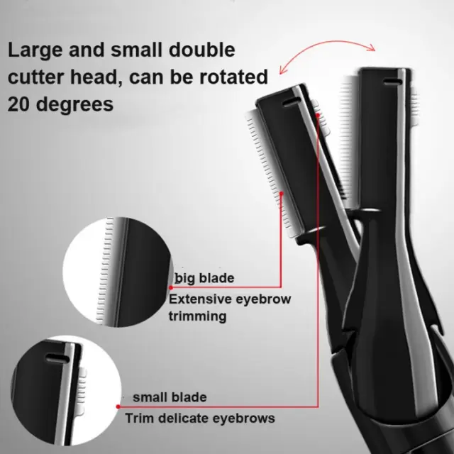 Električni strižnik za obrvi z dvojnim rezalnikom, epilator za otroke (črn)