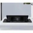 Njegova enostavna vgradnja omogoča, da ga namestite neposredno v pult ali mizo, pri tem pa ohranite gladko površino in brezhiben videz vašega prostora. S priloženim 1,9 metrskim kablom bo dostop do električne energije in USB polnilnih mest vedno dosegljiv, ne glede na postavitev vašega pohištva.