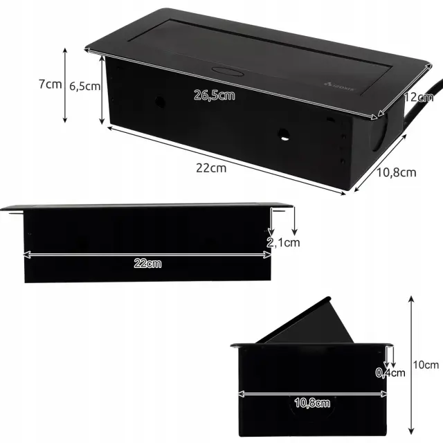 UNIVERZALNA UPORABA – skrite vtičnice niso priljubljene le v kuhinjah. Odlični bodo za dnevno sobo ali pisarno. Napravo lahko namestite na mizo, pult ali mizo, tudi v navpičnem in vodoravnem položaju .