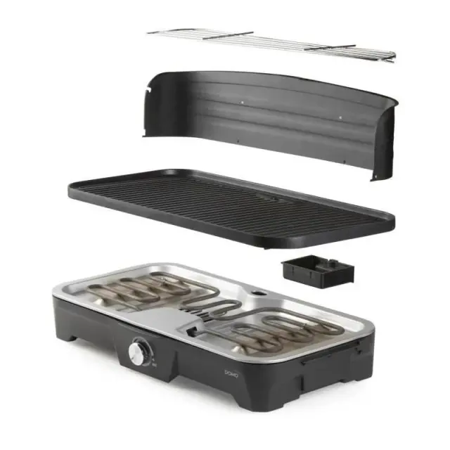 Prenosni električni žar Domo Do9260G iz litega železa je popoln za zunanje obroke z družino in prijatelji. Z močjo 2200 W nudi veliko kuhalno površino 50 x 25 cm, primerno za peko mesa in zelenjave. Visokokakovostna aluminijasta plošča je snemljiva in primerna za pomivanje v pomivalnem stroju, kar olajša čiščenje. Nastavljiv termostat omogoča natančno regulacijo temperature za popolno peko. Eleganten in funkcionalen dizajn je idealen za poletne obroke na prostem.