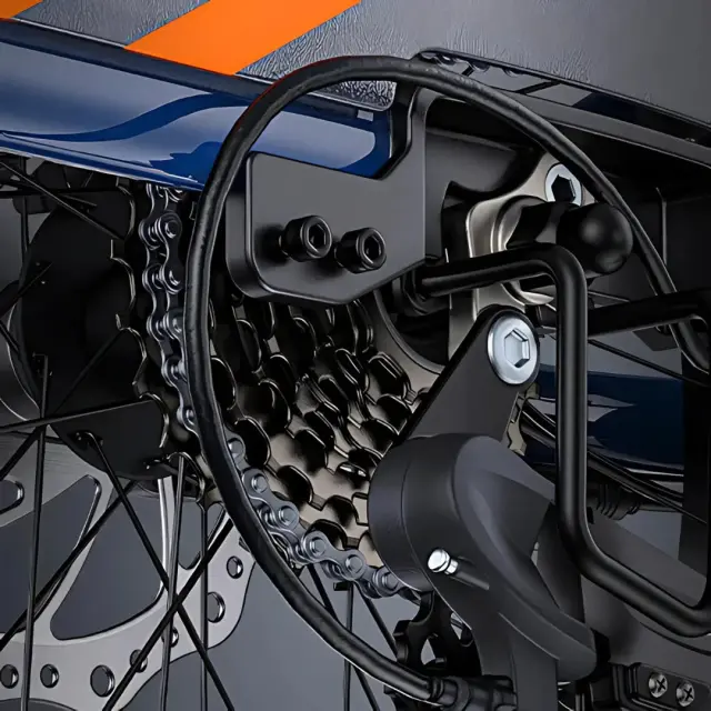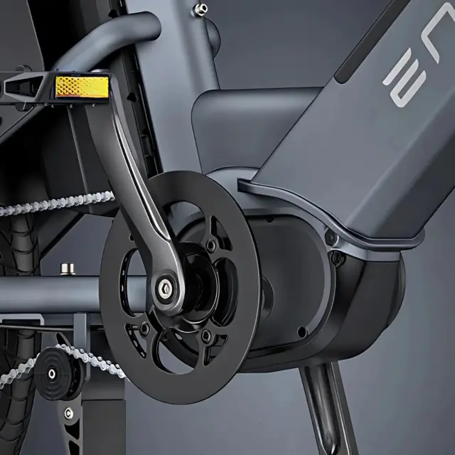 Engwe LE20 poganja napreden 250W brezkrtačni sredinski motor, ki razvije neverjetnih 100 Nm navora. To zagotavlja izjemno moč za premagovanje klancev in enostavno speljevanje tudi pri polni obremenitvi. Motor je opremljen z naprednim senzorjem navora, ki optimizira porabo energije in zagotavlja naraven, intuitiven občutek pri poganjanju, saj se moč prilagaja vašemu pritisku na pedala.