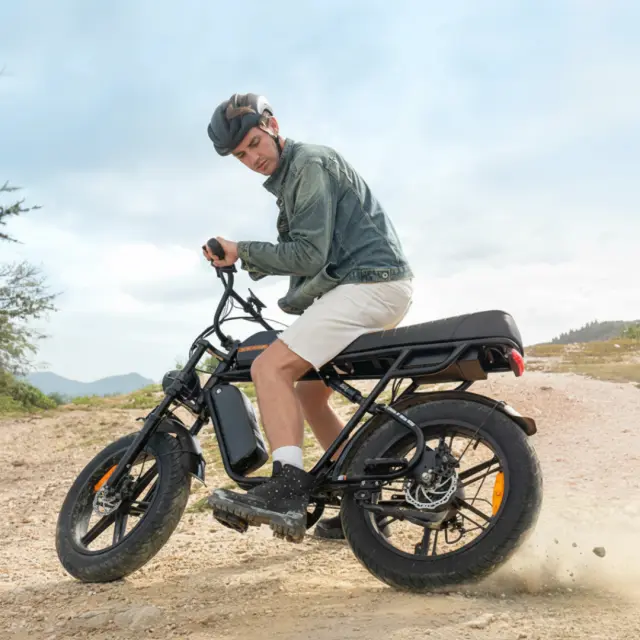 Engwe M1 postavlja udobje na prvo mesto. Opremljen je z naprednim dvojnim vzmetenjem – sprednjim in zadnjim – ki učinkovito absorbira tresljaje in udarce med vožnjo po neravnih površinah. V kombinaciji s prostornim in ergonomsko oblikovanim dvojnim sedežem zagotavlja gladko in udobno vožnjo tako za voznika kot za sopotnika, ne glede na teren.