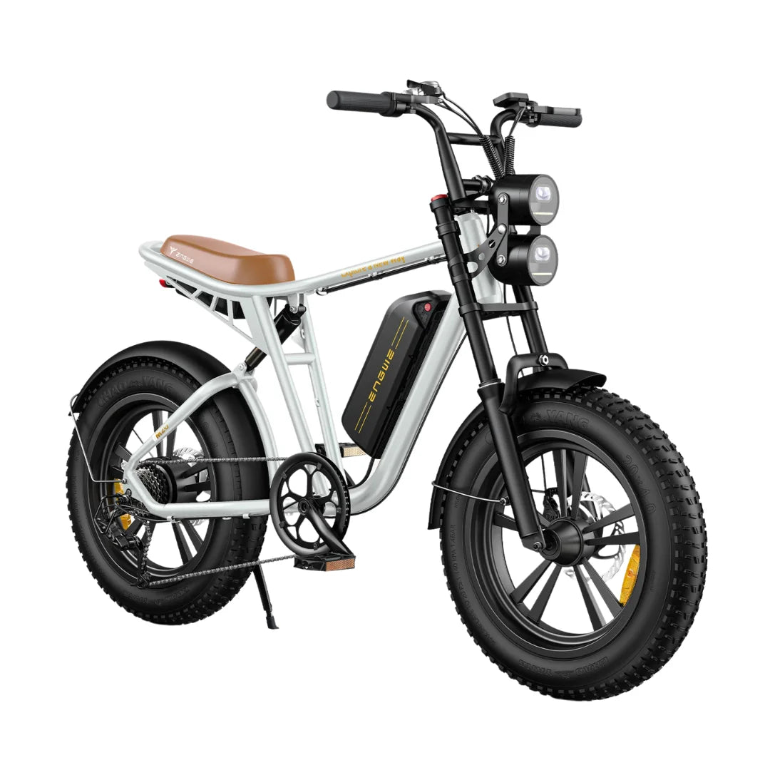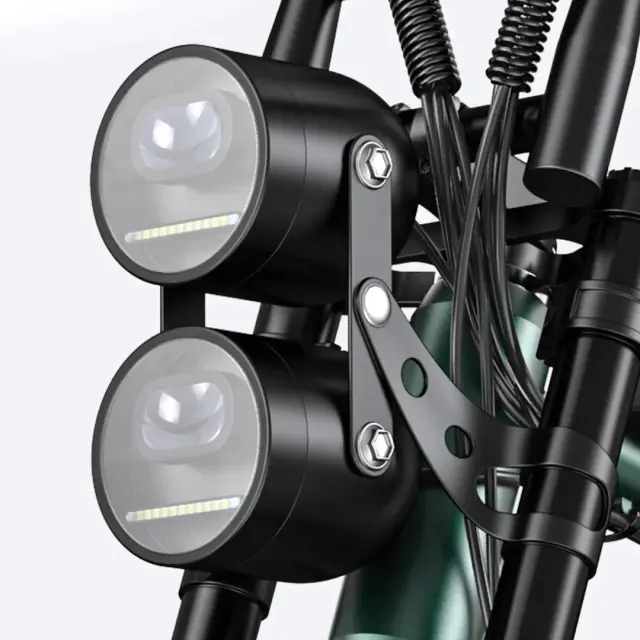 Engwe M20 s svojim robustnim okvirjem iz aluminijeve zlitine in prepoznavnim dizajnom pritegne poglede. Za varno vožnjo ponoči poskrbita dvojna sprednja LED žarometa in svetla zadnja zavorna luč, ki zagotavljata, da boste vedno vidni in varni na cesti.