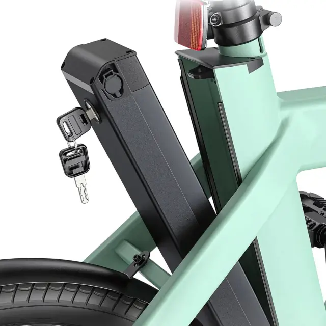 Brezskrbno se vozite skozi ves teden. V okvir je integrirana odstranljiva litij-ionska baterija 36V 9.6Ah s celicami Samsung, ki omogoča doseg do 100 km z enim polnjenjem. Baterijo lahko enostavno odstranite s ključem in jo napolnite doma ali v službi, ključavnica pa zagotavlja učinkovito zaščito pred krajo.
