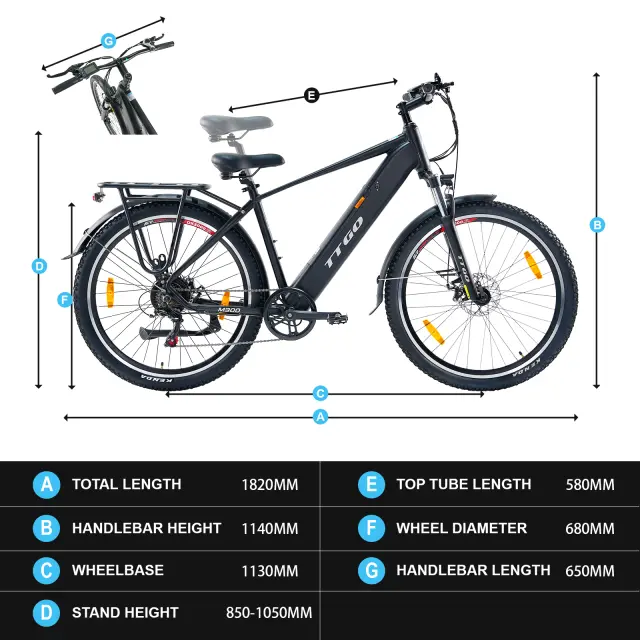 Električno kolo TTGO M300, 250 W senzor navora, 36 V 20 Ah, 27,5" za vožnjo na delo in prosti čas, črno