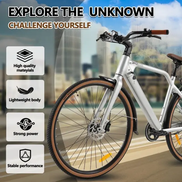 Električno kolo za dnevno vožnjo CMACEWHEEL F700-2, senzor navora, 250 W odstranljiva baterija, pnevmatike 700C, bela
