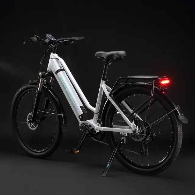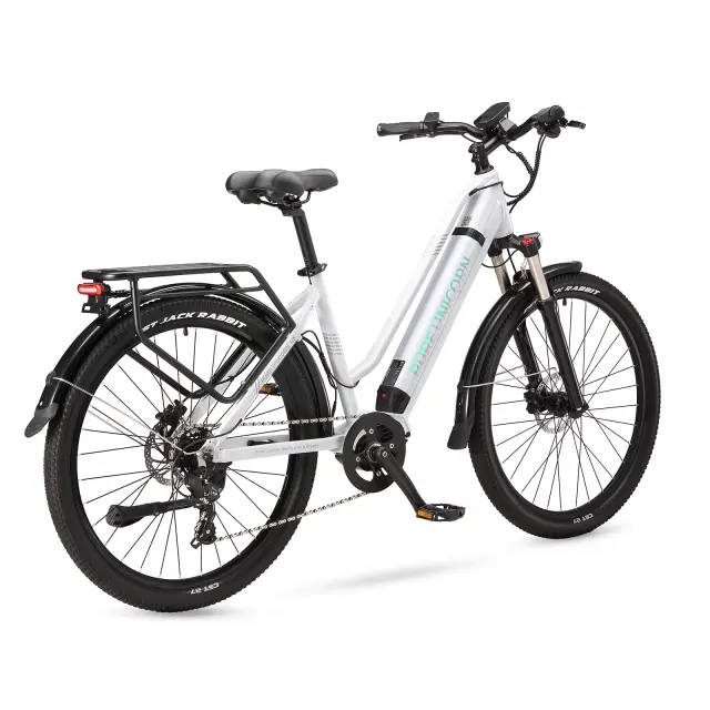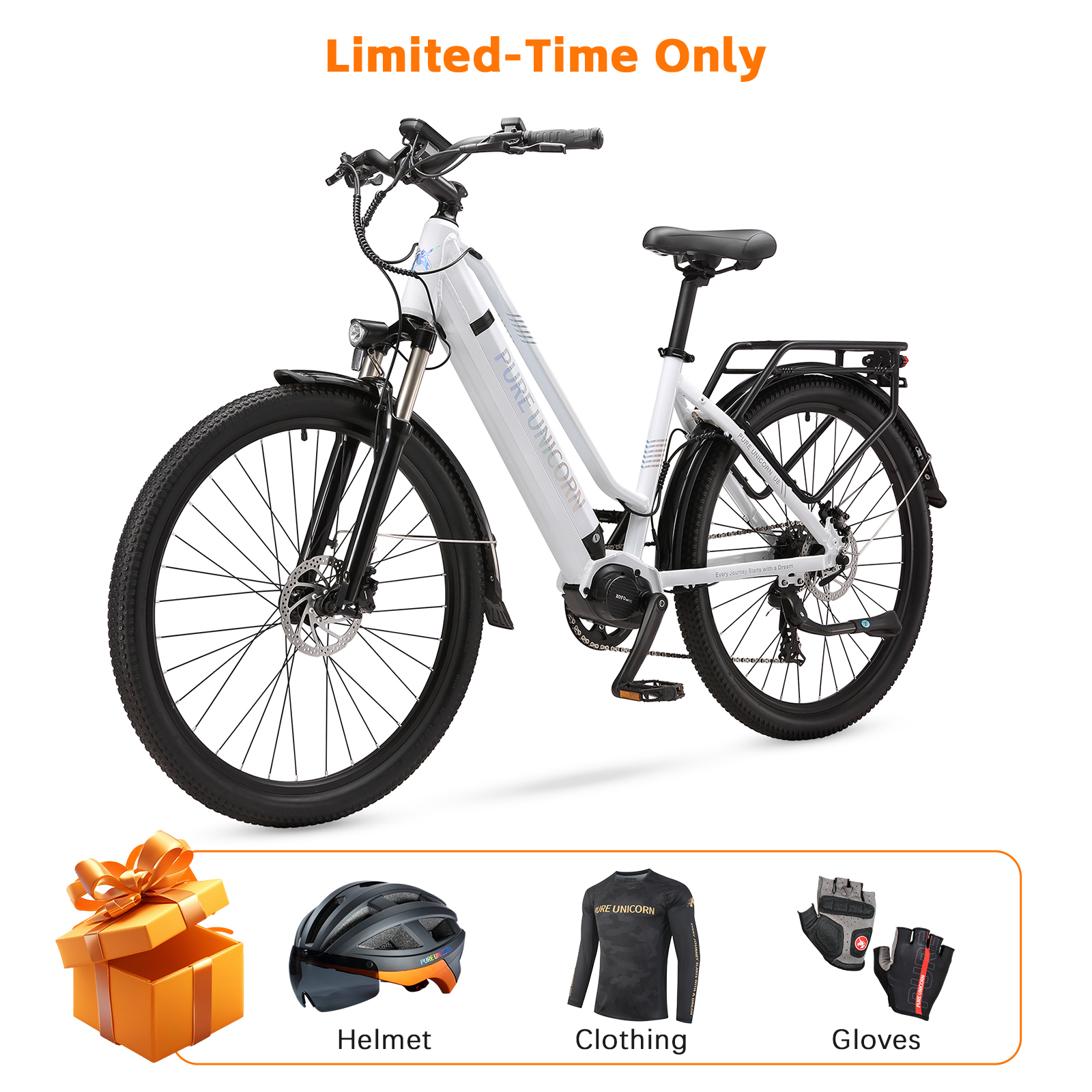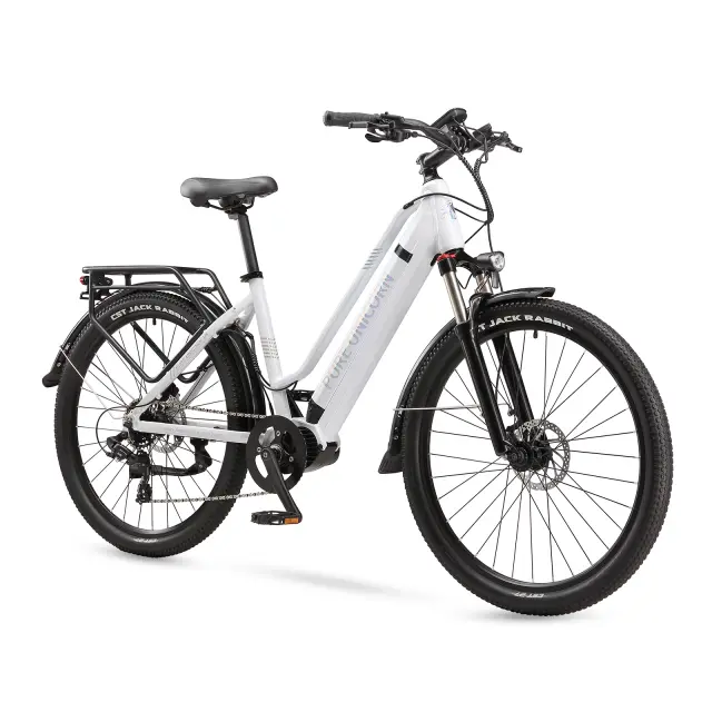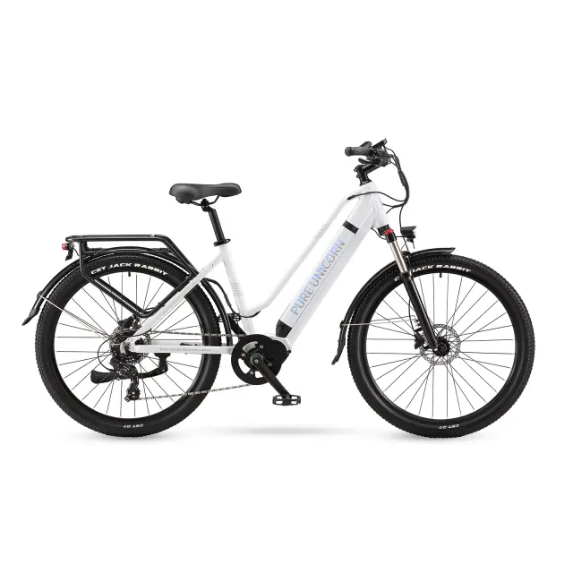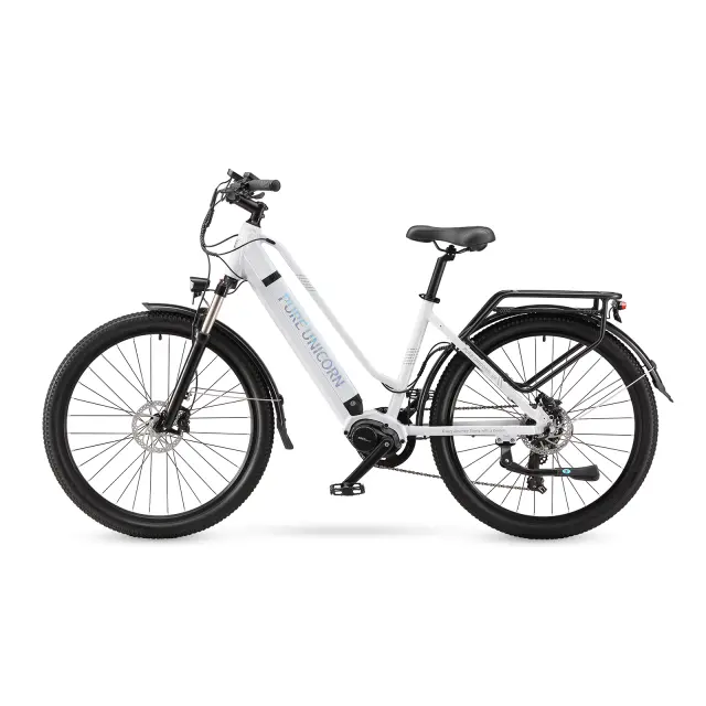 Električno mestno kolo PURE UNICORN U8, srednji pogon, baterija Samsung, belo za vožnjo na delo