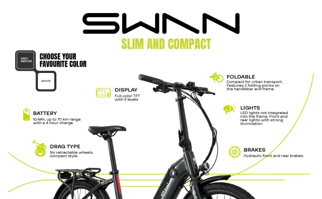 Električno mestno kolo Swan 24" sivo | 70 km dosega - baterija 10,4 Ah