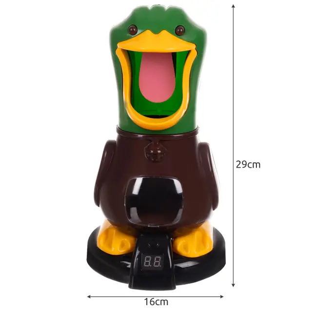 ZADETI V TARČO – streljanje v tarčo od otroka zahteva osredotočenost, zaradi česar pridobi koordinacijo rok in oči. Samo udarite račji jezik s penasto žogico, žogica bo padla v račkin trebušček in merilcu bo dodana točka.
