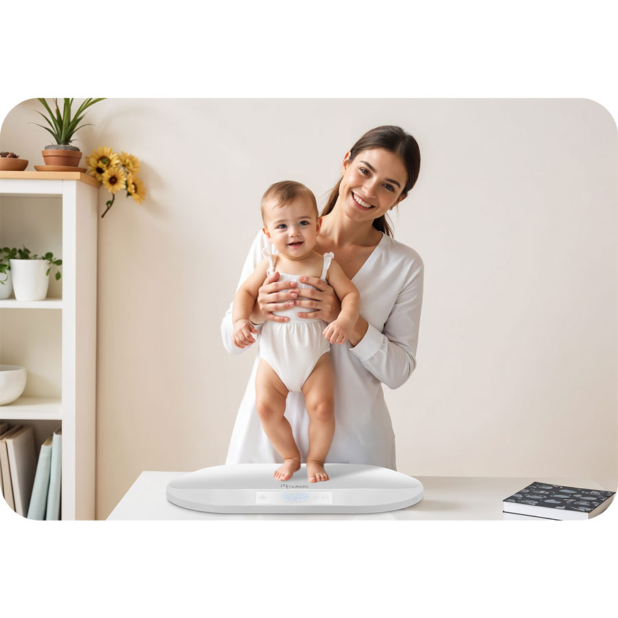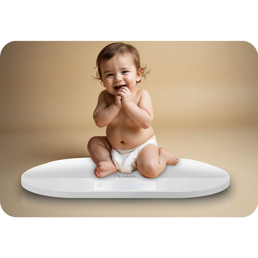 Elektronska tehtnica za dojenčke Nukido Zelo natančna: 5 g - 0,005 kg Varna: certifikati CE, Rohs, FCC, CPC, ISO9003, BSCI. Popolna natančna hišna tehtnica za skrbne starše - preverja, ali otrok pravilno raste in se razvija. Podpora pri hranjenju – ocena učinkovitosti hranjenja, predvsem pri dojenju. Za starše – omogoča nadzorovanje pridobivanja telesne teže vašega otroka, da ocenite njegovo ali njeno zdravje. Menjava tehtalne enote - prilagodljivost in praktična uporaba. Intuitivna in enostavna sprememba enote za tehtanje. Možnost izbire med štirimi enotami: grami, kilogrami, unče, funti. FUNKCIJA TARE: Vgrajena možnost tariranja omogoča enostavno uporabo. Zelo natančna lestvica! Natančnost merjenja: 5 g - 0,005 kg Natančnost 5 g (0,005 kg) je izjemna natančnost, ki vam omogoča, da opazite tudi najmanjše spremembe otrokove teže - pomemben je dobesedno vsak gram! Zahvaljujoč temu so lahko starši prepričani, da se njihov otrok pravilno razvija, nedonošenčki ali otroci, ki potrebujejo posebno nego, pa so pod najvišjo stopnjo nadzora! Ročna funkcija HOLD vam omogoča ohranjanje stabilnega rezultata meritve, ko se otrok premika. Po pritisku na tipko HOLD tehtnica zabeleži in zapomni odčitek ter odpravi vpliv trenutnih nihanj. Tako je lažje dobiti natančen rezultat, tudi če otrok ne miruje. Od dojenčka. Tehtnica bo uporabna dolgo časa in vas bo spremljala skozi vse faze razvoja vašega otroka. Maksimalna obremenitev: 40 kg. Otrok tehta približno 40 kg, običajno med 10. in 12. letom starosti. Vsak centimeter je pomemben pri razvoju vašega dojenčka! dolžina do 150 cm Zahvaljujoč vgrajeni meritvi lahko izredno natančno spremljate obseg glave vašega otroka in poskrbite za popoln razvoj! To je nenadomestljivo orodje, ki vam bo omogočilo, da pravočasno opazite morebitne nepravilnosti in poskrbite za zdravje vašega dojenčka na najvišji ravni! Parametri: varen material: ABS, velik, berljiv LCD zaslon, ergonomska oblika za lažje tehtanje, baterije priložene - 3 x 1,5 V AAA, tehtanje do: 40 kg, natančnost merjenja: 0,005 kg, funkcija tariranja, zaklepanje rezultatov tehtanja, samodejno obveščanje o izpraznjena baterija, moč baterije, certifikati CE, Rohs, FCC, CPC, ISO9003, BSCI, možnost spremembe enote teže. ⭐⭐⭐⭐⭐ ABS pomeni vzdržljivost, varnost in zanesljivost - popoln material za težo dojenčka!