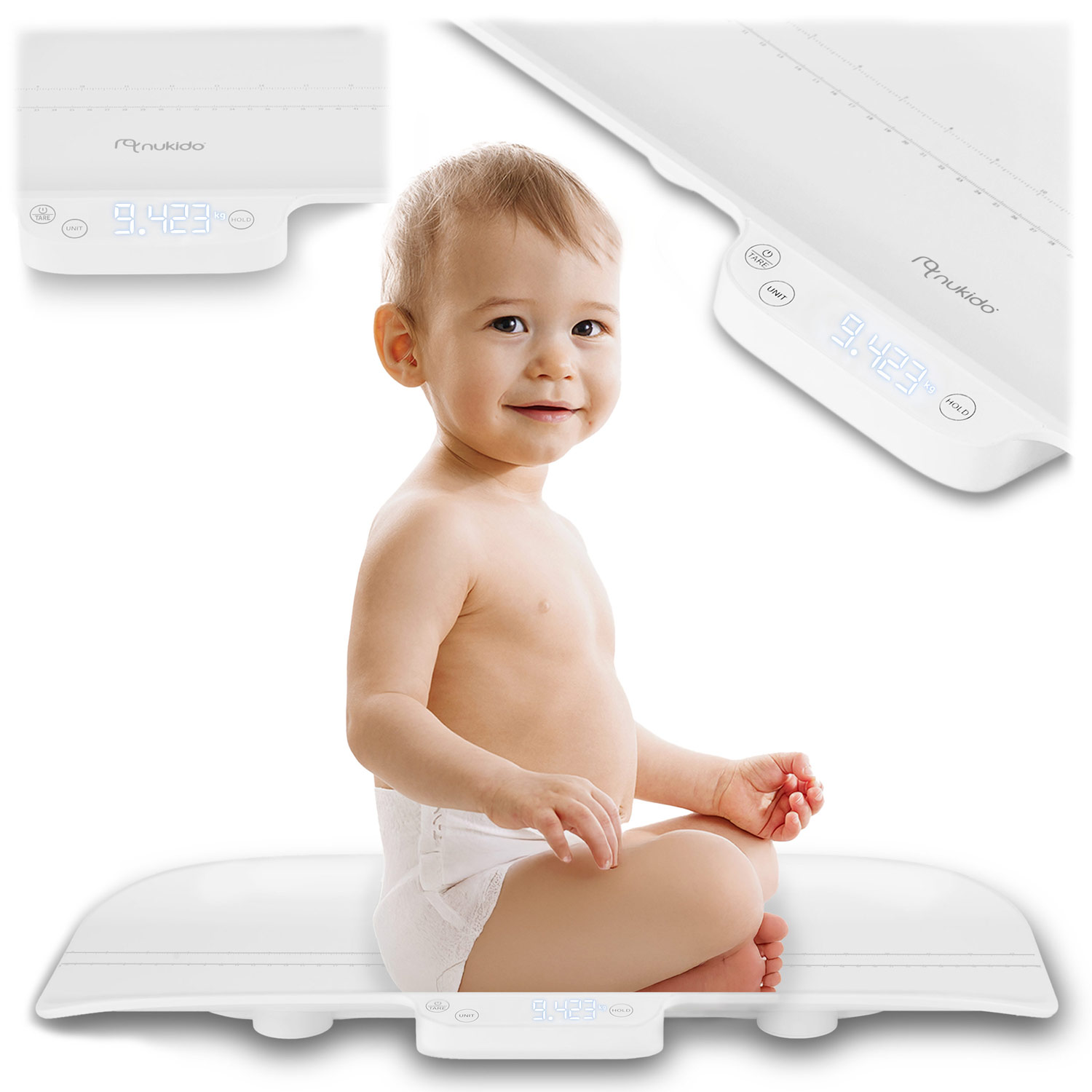 Elektronska tehtnica za dojenčke Nukido Zelo natančna: 5 g - 0,005 kg Varna: certifikati CE, Rohs, FCC, CPC, ISO9003, BSCI. Popolna natančna hišna tehtnica za skrbne starše - preverja, ali otrok pravilno raste in se razvija. Podpora pri hranjenju – ocena učinkovitosti hranjenja, predvsem pri dojenju. Za starše – omogoča nadzorovanje pridobivanja telesne teže vašega otroka, da ocenite njegovo ali njeno zdravje. Menjava tehtalne enote - prilagodljivost in praktična uporaba. Intuitivna in enostavna sprememba enote za tehtanje. Možnost izbire med štirimi enotami: grami, kilogrami, unče, funti. FUNKCIJA TARE: Vgrajena možnost tariranja omogoča enostavno uporabo. Zelo natančna lestvica! Natančnost merjenja: 5 g - 0,005 kg Natančnost 5 g (0,005 kg) je izjemna natančnost, ki vam omogoča, da opazite tudi najmanjše spremembe otrokove teže - pomemben je dobesedno vsak gram! Zahvaljujoč temu so lahko starši prepričani, da se njihov otrok pravilno razvija, nedonošenčki ali otroci, ki potrebujejo posebno nego, pa so pod najvišjo stopnjo nadzora! Ročna funkcija HOLD vam omogoča ohranjanje stabilnega rezultata meritve, ko se otrok premika. Po pritisku na tipko HOLD tehtnica zabeleži in zapomni odčitek ter odpravi vpliv trenutnih nihanj. Tako je lažje dobiti natančen rezultat, tudi če otrok ne miruje. Od dojenčka. Tehtnica bo uporabna dolgo časa in vas bo spremljala skozi vse faze razvoja vašega otroka. Maksimalna obremenitev: 40 kg. Otrok tehta približno 40 kg, običajno med 10. in 12. letom starosti. Vsak centimeter je pomemben pri razvoju vašega dojenčka! Izmerite na tehtnici. dolžina do 60 cm Zahvaljujoč vgrajeni meritvi lahko izredno natančno spremljate rast vašega otroka in poskrbite za popoln razvoj! To je nenadomestljivo orodje, ki vam bo omogočilo, da pravočasno opazite morebitne nepravilnosti in poskrbite za zdravje vašega dojenčka na najvišji ravni! Parametri: Varen material: ABS, velik, čitljiv LCD zaslon, ergonomska oblika za lažje tehtanje, priložene baterije - 2 x 1,5 V AAA, tehtanje do: 40 kg, natančnost merjenja: 0,005 kg, funkcija tariranja, zaklepanje rezultatov tehtanja, samodejno obveščanje o prazna baterija, moč baterije, CE, Rohs, FCC, CPC, ISO9003, BSCI certifikati, možnost menjave enote teže. ⭐⭐⭐⭐⭐ ABS material pomeni vzdržljivost, varnost in zanesljivost - popoln material za težo dojenčka!