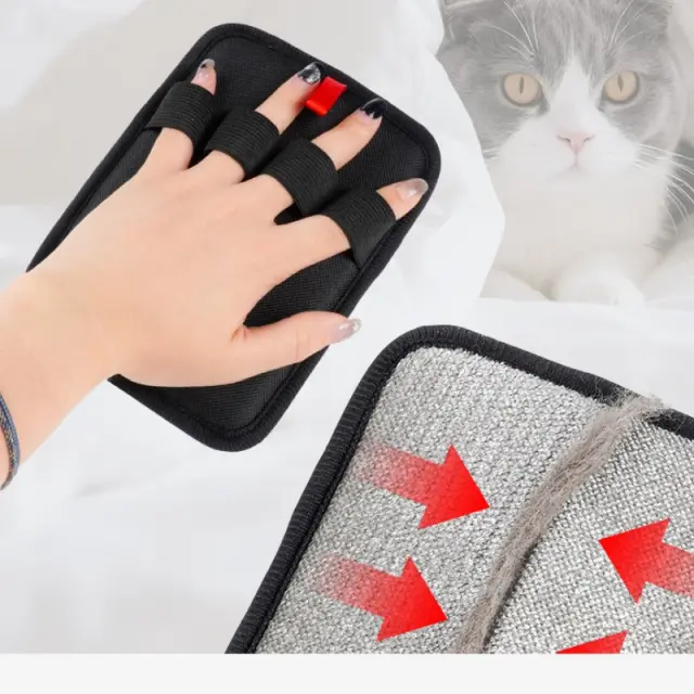 Varna zasnova s štirimi prsti: Inovativna zasnova s štirimi prsti te rokavice za odstranjevanje dlak hišnih ljubljenčkov zagotavlja varen in udoben oprijem med uporabo. Rokavica ostane trdno na mestu na vaši roki, preprečuje zdrs in omogoča natančen nadzor med čiščenjem. Ta zasnova tudi poveča površino rokavice, kar vam omogoča, da z vsakim potegom pokrijete večjo površino. Funkcija proti zdrsu je še posebej uporabna pri čiščenju velikih površin ali pri spopadanju z močno umazanimi območji. Zasnova s štirimi prsti je združljiva z večino velikosti rok, kar zagotavlja udobno in učinkovito izkušnjo čiščenja za vse uporabnike. Popolna je za čiščenje pohištva, avtomobilskih sedežev in drugih težko dostopnih mest.