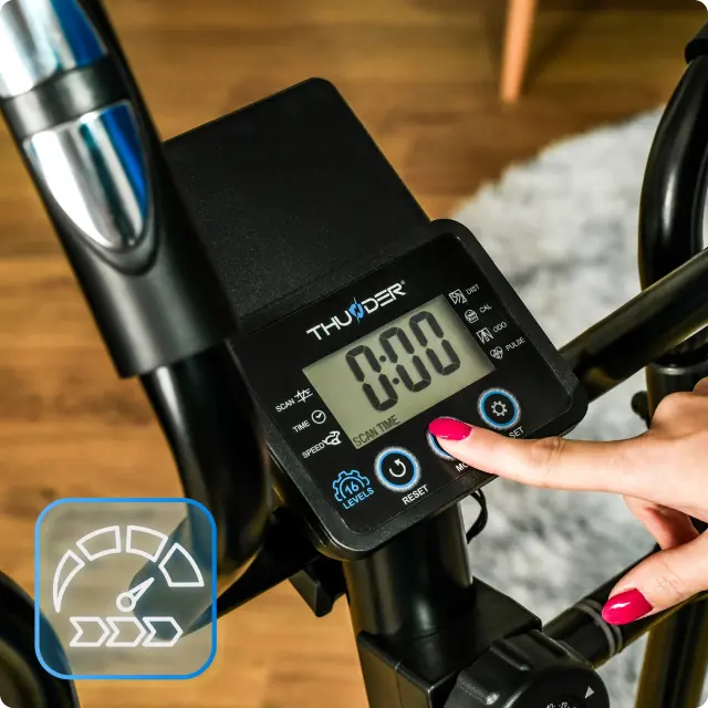 Iščete kompaktno, a hkrati napredno napravo za domačo vadbo? Magnetni eliptični trenažer THUNDER® SPARKY je idealna rešitev, ki združuje udobje, funkcionalnost in sodobne tehnologije ter zagotavlja učinkovito vadbo vsak dan.