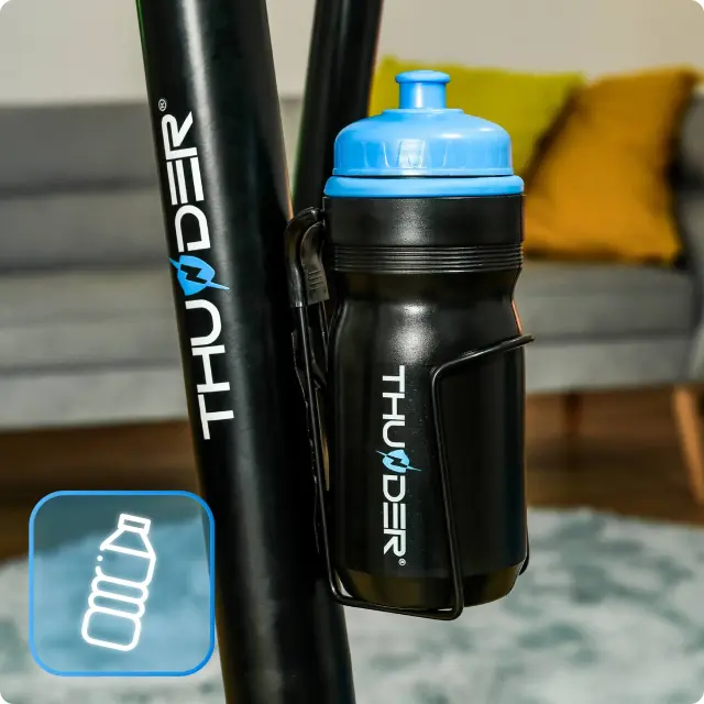 Nosilec za bidon ter THUNDER® bidon – omogoča enostavno hidracijo med vadbo in večje udobje.