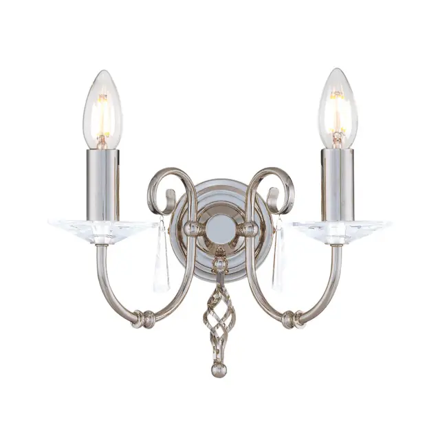 Elstead Aegean Stenska svetilka za notranjo uporabo s svečo, 2 žarnici, polirani nikelj, E14