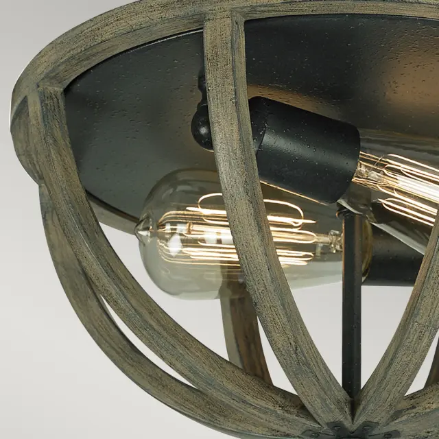 Elstead Allier 2 stropni svetilki, vgradna svetilka v svetli barvi temnega lesa, starinsko železo, E27