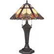 Elstead Cambridge Namizna svetilka z 2 lučema, vintage bron, steklo Tiffany, E27