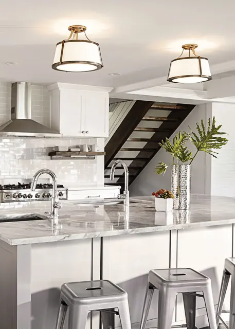 Elstead Charlotte Stropna svetilka s 3 lučmi, pol-vgradna, brušena karamela, E27