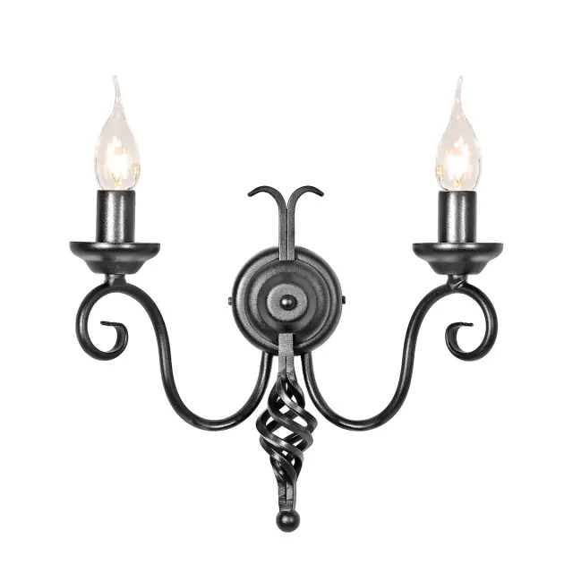 Elstead Harlech Stenska svetilka z 2 svečama, črna, z senčnikom