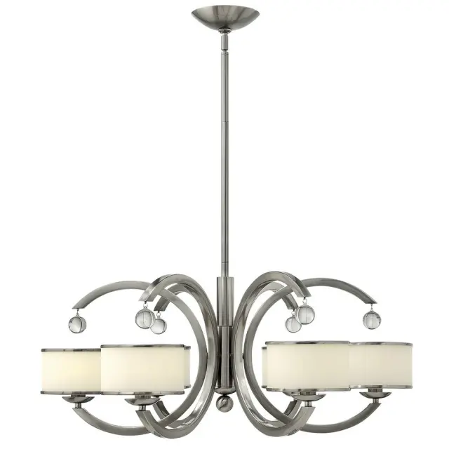 Elstead Hinkley Monaco Viseča svetilka z več kraki in senčnikom 6x E14, svetli brušeni nikelj