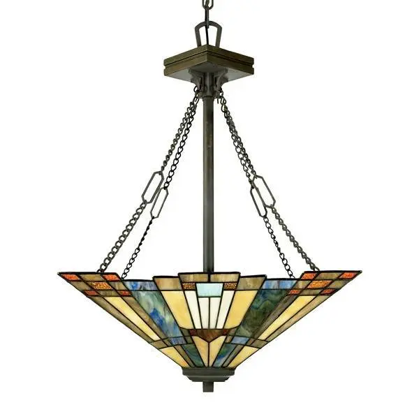 Elstead Inglenook Stropna svetilka s 3 lučmi, bronasta, Tiffany, E27