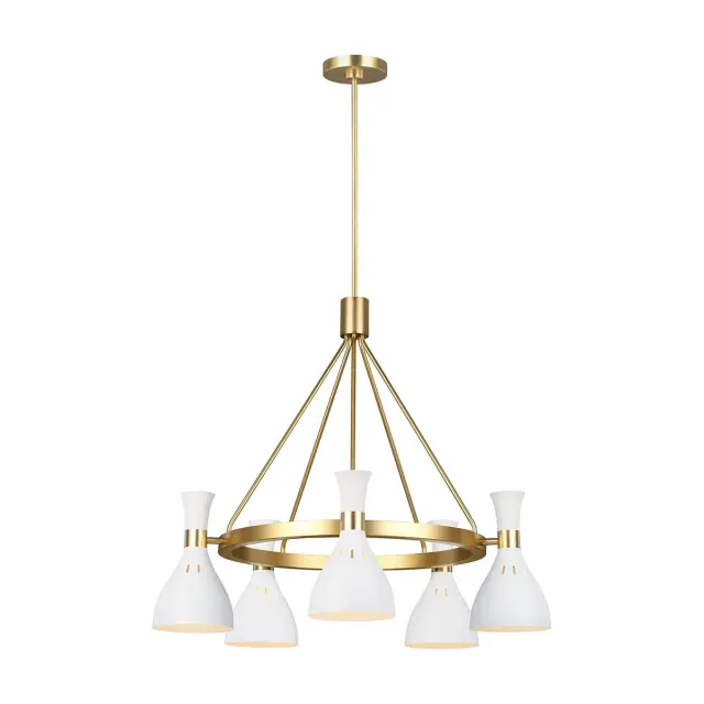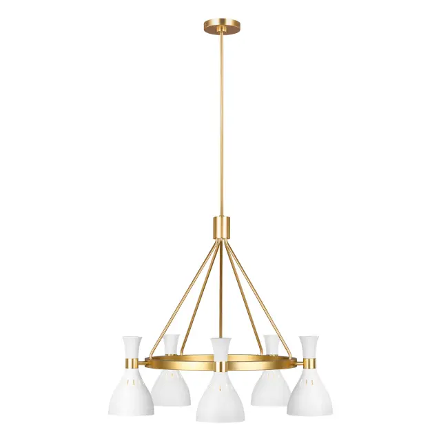 Elstead Joan Lestenec s 5 lučmi, mat bela, mat bela, polirana medenina, E27