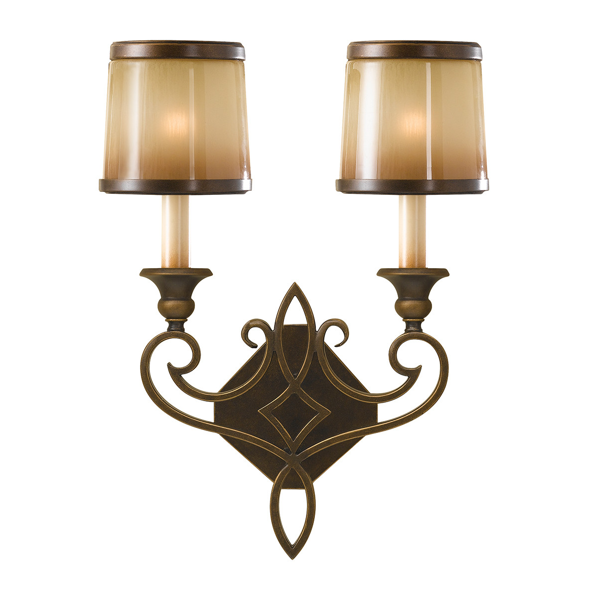 Elstead Justine Stenska svetilka za notranjo uporabo, 2 sveči, bronasta, s senčniki iz hrastovega stekla, E14