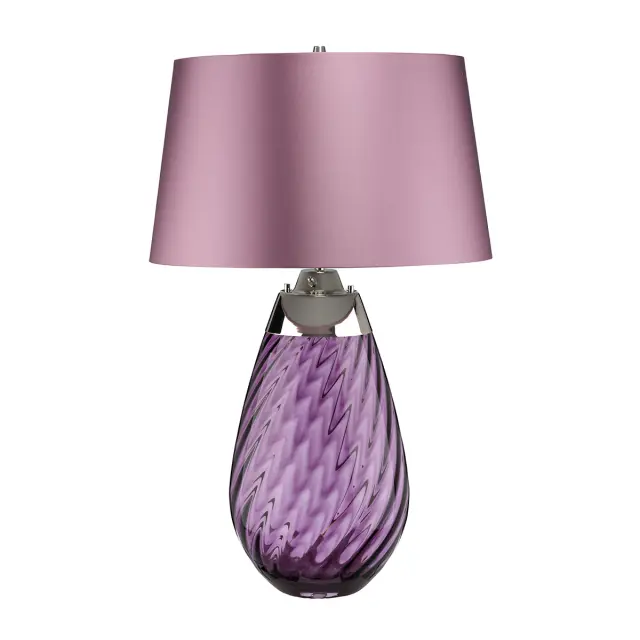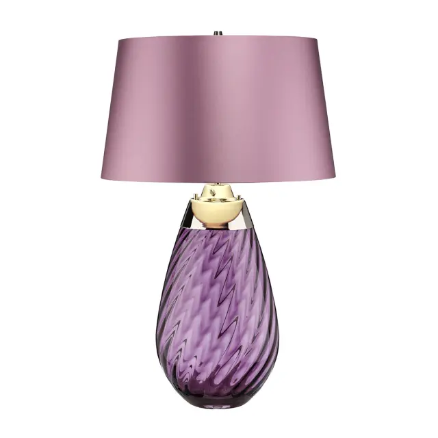 Elstead Lena Velika namizna svetilka z 2 lučema, steklo v barvi slive, senčnik barve vresja, E27