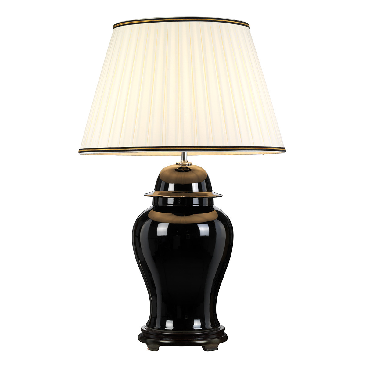 Elstead Lightbox Chiling Orientalska keramična namizna svetilka z 1 lučjo in visokim bombažnim senčnikom v barvi slonovine Empire