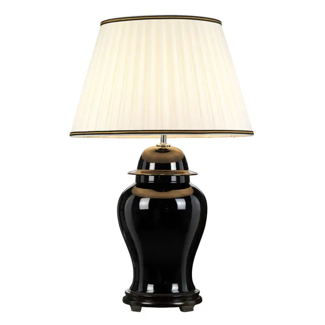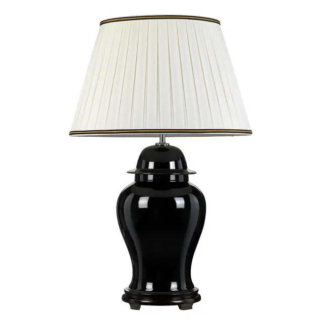 Elstead Lightbox Chiling Orientalska keramična namizna svetilka z 1 lučjo in visokim bombažnim senčnikom v barvi slonovine Empire