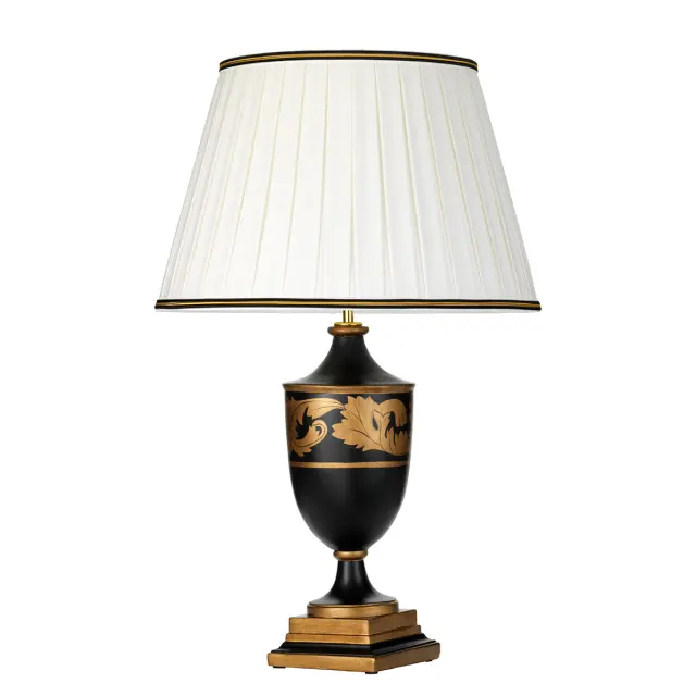 Elstead Lightbox Namizna svetilka Narbonne z 1 lučjo, črna lesena urna, z visokim bombažnim senčnikom v slogu Empire