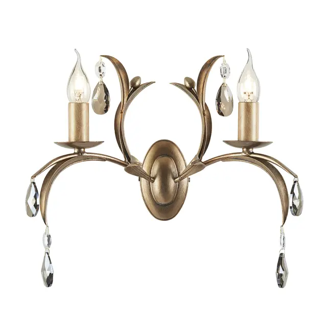 Elstead Lily Stenska svetilka z 2 svečama v kovinsko-bronasti barvi s cvetličnim vzorcem in listi
