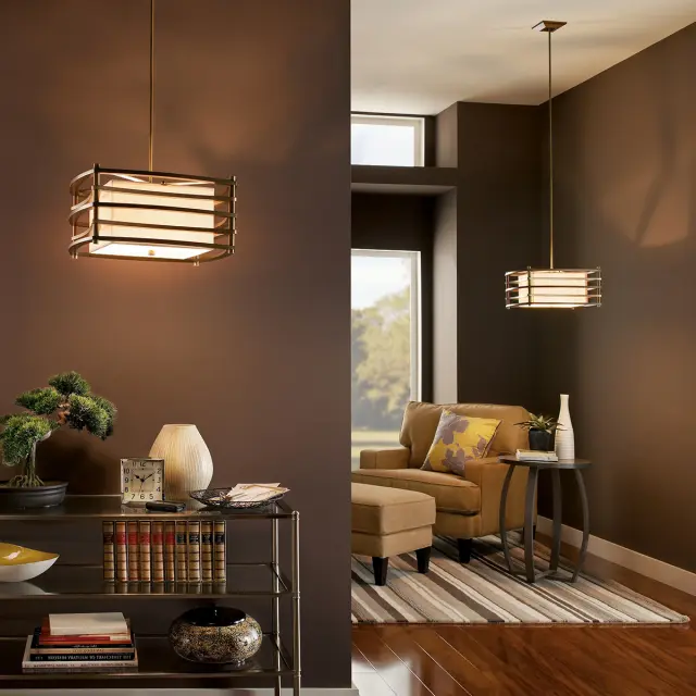 Elstead Moxie 2 majhni stropni obesalni svetilki, bronasta, bež, E27