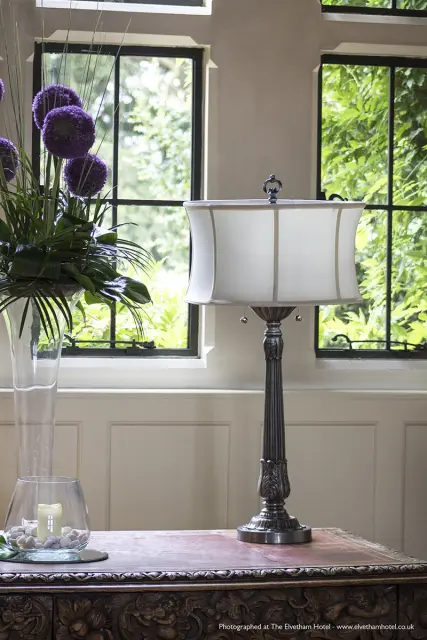 Elstead Namizna svetilka z 2 lučema, kositrni element, E27