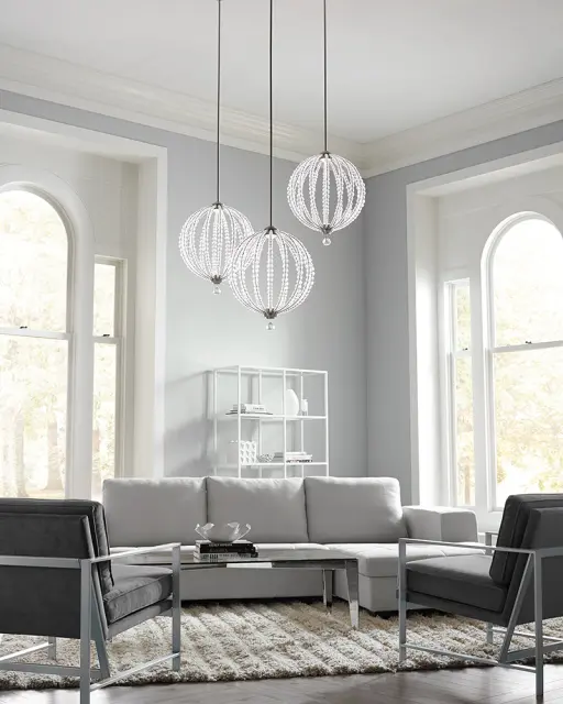 Elstead Oberlin LED stropna svetilka z 2 velikima kroglastima svetilkama, saten nikelj