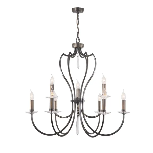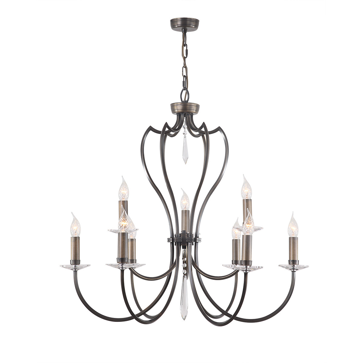 Elstead Pimlico Lestenec z 9 lahkimi svetilkami, temno bronasta površina, E14