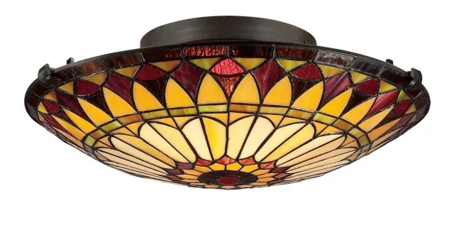 Elstead West End Stropna svetilka z 2 lučema, vintage bron, steklo Tiffany, E27