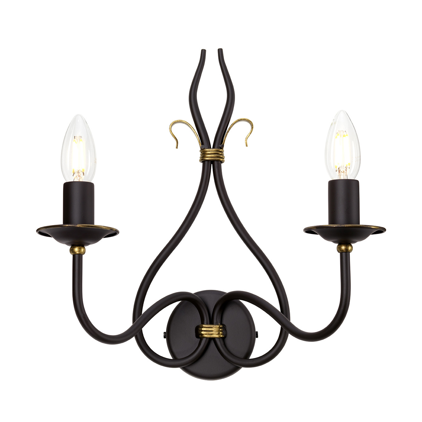 Elstead Windermere Stenska svetilka za notranjo uporabo s svečo, 2 žarnici, zlata, rjasta, E14