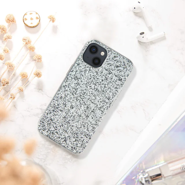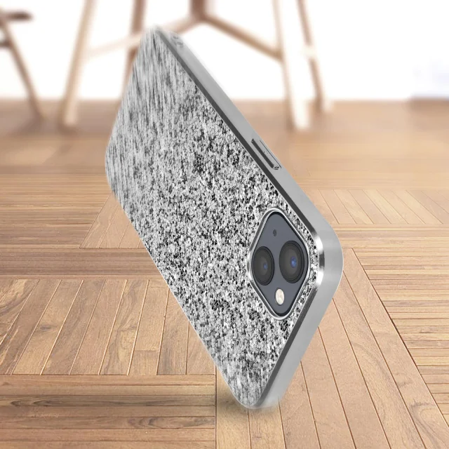 Embossed Glitter Mini iPhone 13 etui, kovinsko trdna - srebrna