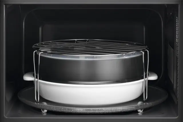 Ostali podatki: 24 l, BARVA: zunanjost črna, notranjost siva, vrata dimljeno steklo, Moč: 900 W, žar 1000 W, 7 stopenj moči mikrovalov, 3 načini delovanja – mikrovalovi, žar in kombinirano, Upravljanje z vrtljivimi gumbi, Ročni programi: Ohranjanje temperature/topljenje masla in čokolade 90 W, odtaljevanje glede na težo 136 W, odtaljevanje glede na čas 136 W, 250 W, 450 W, 600 W, 800 W, 900 W, 2 stopnji kombinacije mikrovalov & žara, kvarčni žar 1000 W, Samodejni programi glede na težo: Odtaljevanje in kuhanje, Dimenzije v cm: 28 V × 46,9 Š × 36,3 G