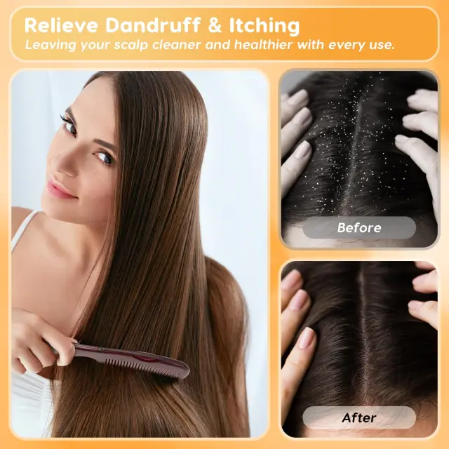 Prhljaj in nadzor olja: Učinkovito se spopada s prhljajem in prekomernim nabiranjem olja na lasišču. Edinstvena oblika glavnika pomaga odstraniti luske in nečistoče, zaradi česar se vaše lasišče počuti čisto in osveženo. Je priročna rešitev brez umivanja za ohranjanje zdravega okolja lasišča. Z odstranjevanjem odvečnega olja pomaga preprečevati zamašene pore in spodbuja rast las. Primerno za vsakodnevno uporabo in nežno do občutljivega lasišča.