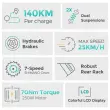 Varnost je na prvem mestu pri kolesu za dnevno vožnjo Engwe E26, ki vključuje 180 mm hidravlične kolutne zavore na rotorju spredaj in zadaj za zanesljivo zaustavitveno moč. Kolo se ponaša tudi s celovitim sistemom osvetlitve, ki vključuje velike projekcijske žaromete, zavorne luči, zadnje luči in odsevnike na kolesih. Te izboljšave izboljšajo vidljivost in varnost, zlasti med nočnimi vožnjami ali v slabih svetlobnih pogojih.